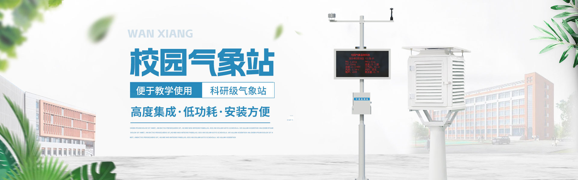 山東萬象環(huán)境科技有限公司官網(wǎng)主要產(chǎn)品有防爆氣象站,校園氣象站,農(nóng)業(yè)氣象站,負(fù)氧離子監(jiān)測(cè)站,超聲波氣象站,歡迎咨詢13276362033!